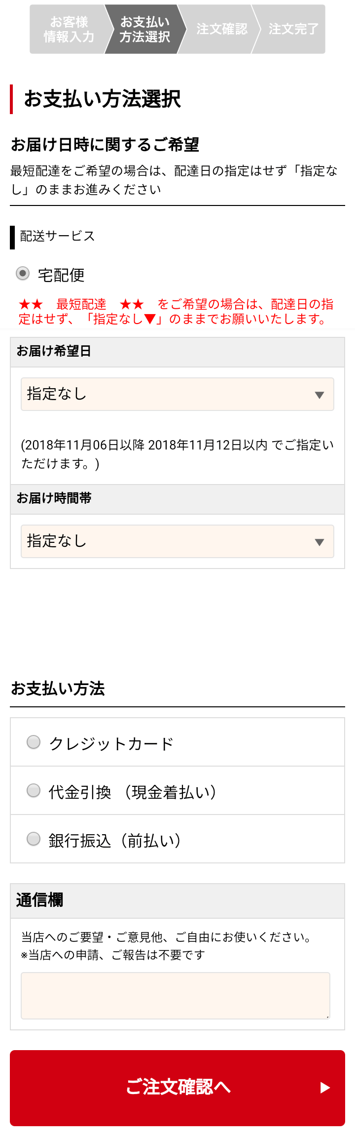 5 ‚¨“Í‚¯Šó–]“úE‚¨“Í‚¯ŽžŠÔ‘ÑE‚¨Žx•¥•û–@‚ð‘I‘ð‚µAy‚²’•¶Šm”F‚Özƒ{ƒ^ƒ“‚ðƒ^ƒbƒv